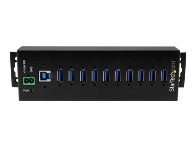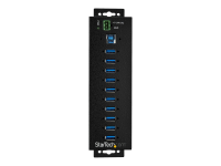 HB30A10AME - StarTech.com 10 Port USB Hub with Power Adapter, Surge Protection, Metal Industrial USB 3.0 Data Transfer Hub, Din Rail, Wall or Desk Mountable, High Speed USB 3.1/ USB 3.2 Gen 1 5Gbps Hub